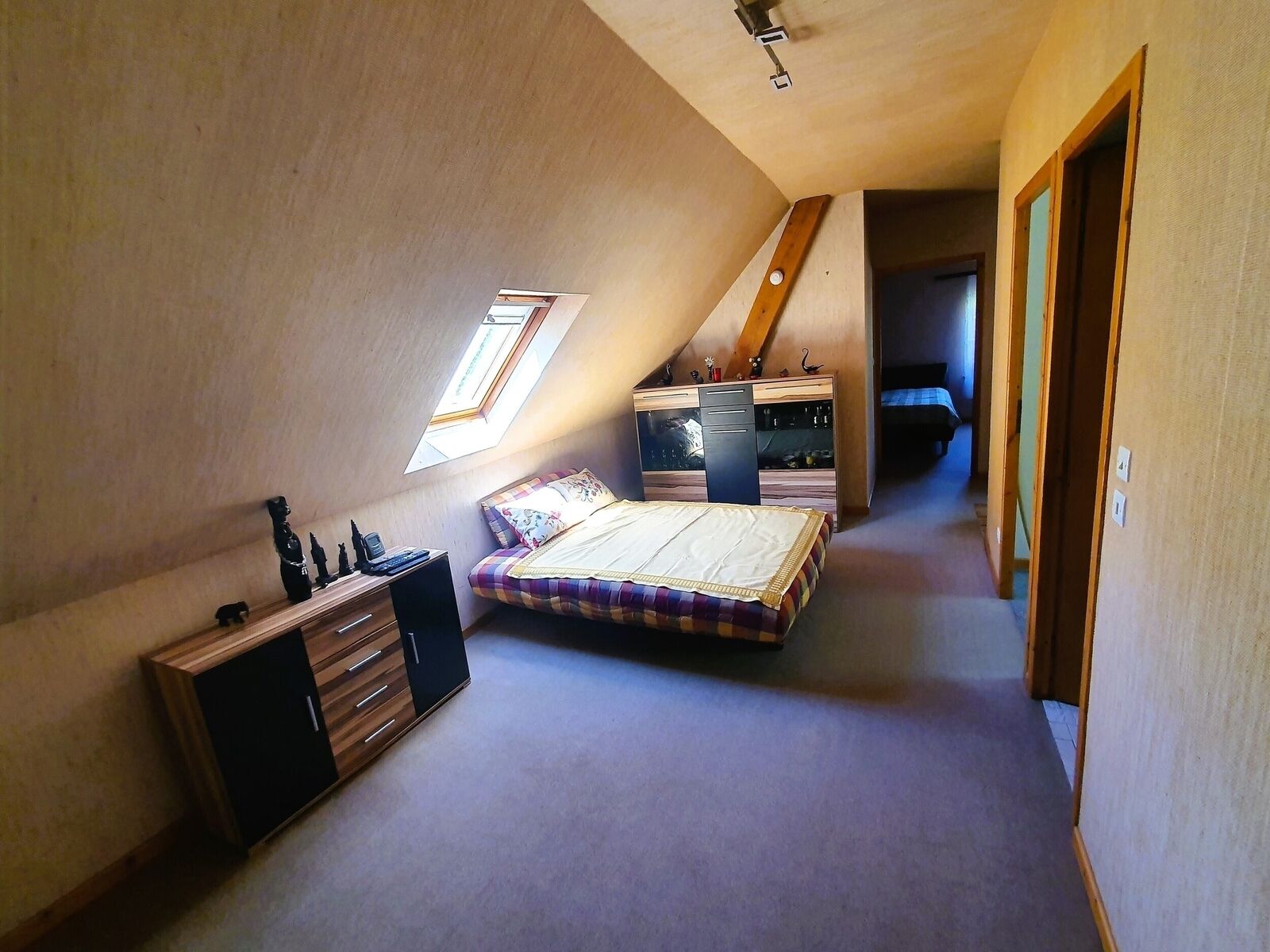 Cette maison, totalement rénovée entre 1982 et 1985, est très bien entretenue. Elle se compose d'une entrée, d'une agréable pièce à vivre, d'une cuisine, de deux pièces d'environ 11 m² et d'une salle d'eau avec douche et toilette. A l'étage, la jolie mezzanine distribue une chambre spacieuse de 17 m², deux autres chambres et une grande salle de bain avec baignoire et toilette. Le grenier, d'une surface de 40 m² au sol, offre un bel espace de rangement et peut être aménagé. Deux poêles et un "kachelhofele", un garage, une cave, une terrasse et un cabanon en bois, sont également à votre disposition.