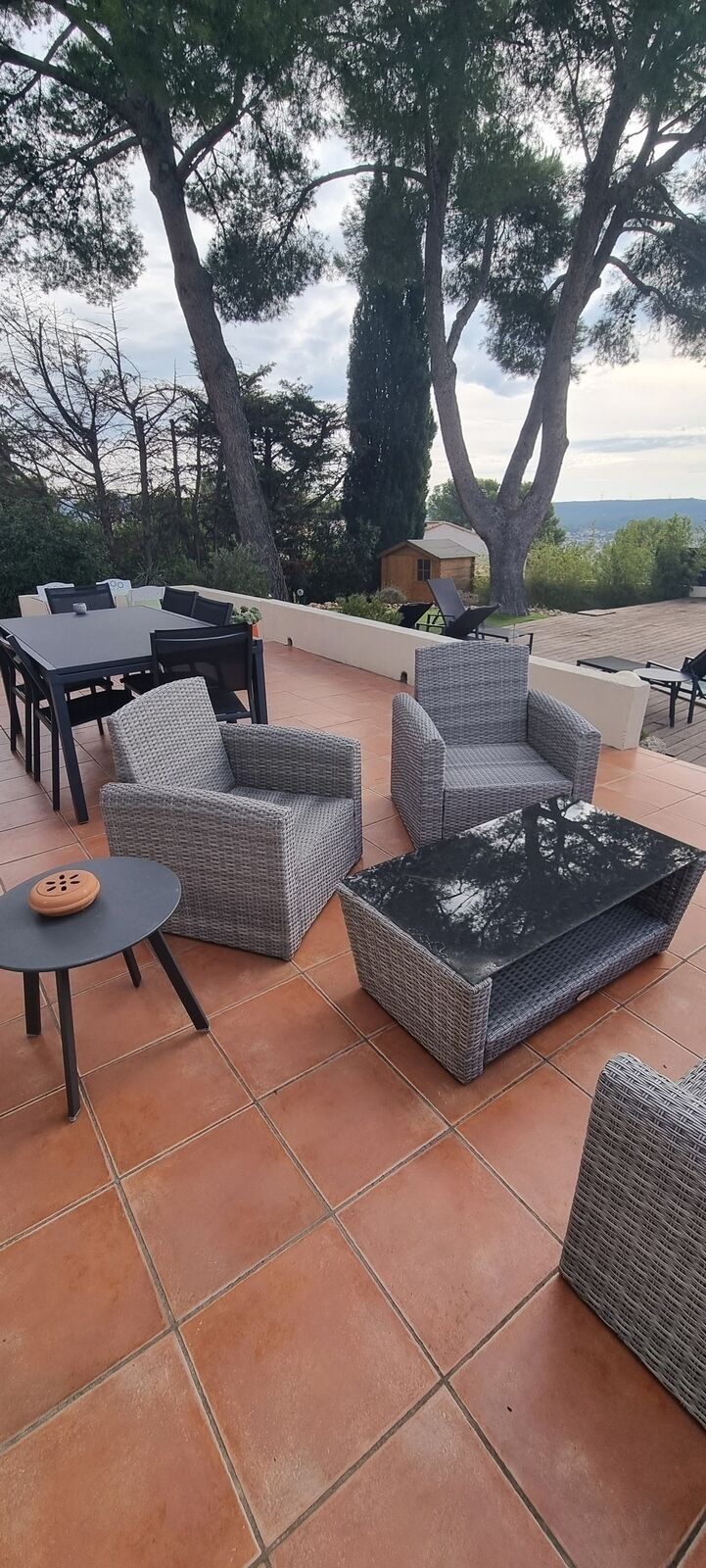 Vous apprécierez le terrain d'environ 666 m2 joliment arboré avec ses belles terrasses, sa vue exceptionnelle, dégagée et dominante, sans vis à vis,