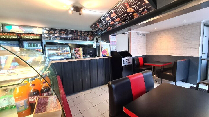 D'environ 50m2 comprenant : une salle de réception de 12 places assises, un WC avec lave main, une cuisine de 14m2 avec 1 frigo positif, 4 congélateurs, une machine à kebab, 1 saladette, 1 ilot en marbre et une extraction de diamètre 300.