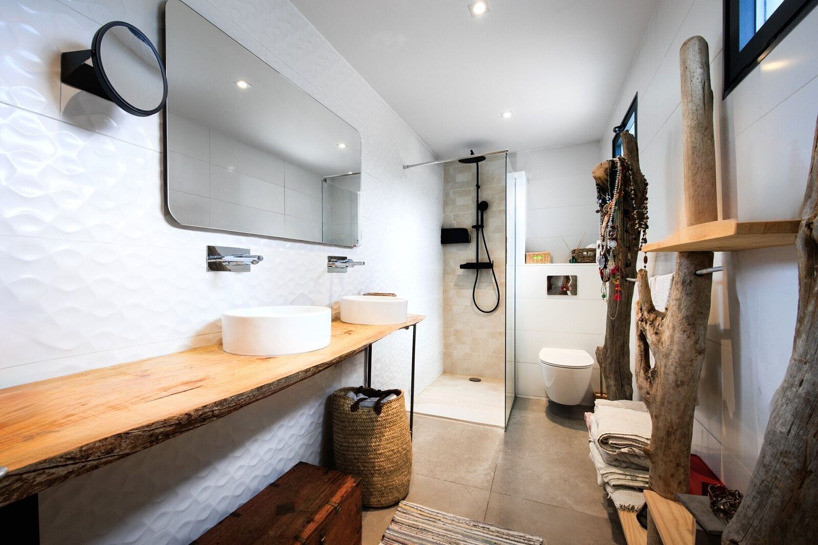 Le niveau supérieur accueille un autre espace nuit aux prestations neuves. Il offre deux chambres, une salle d’eau et un deuxième WC.