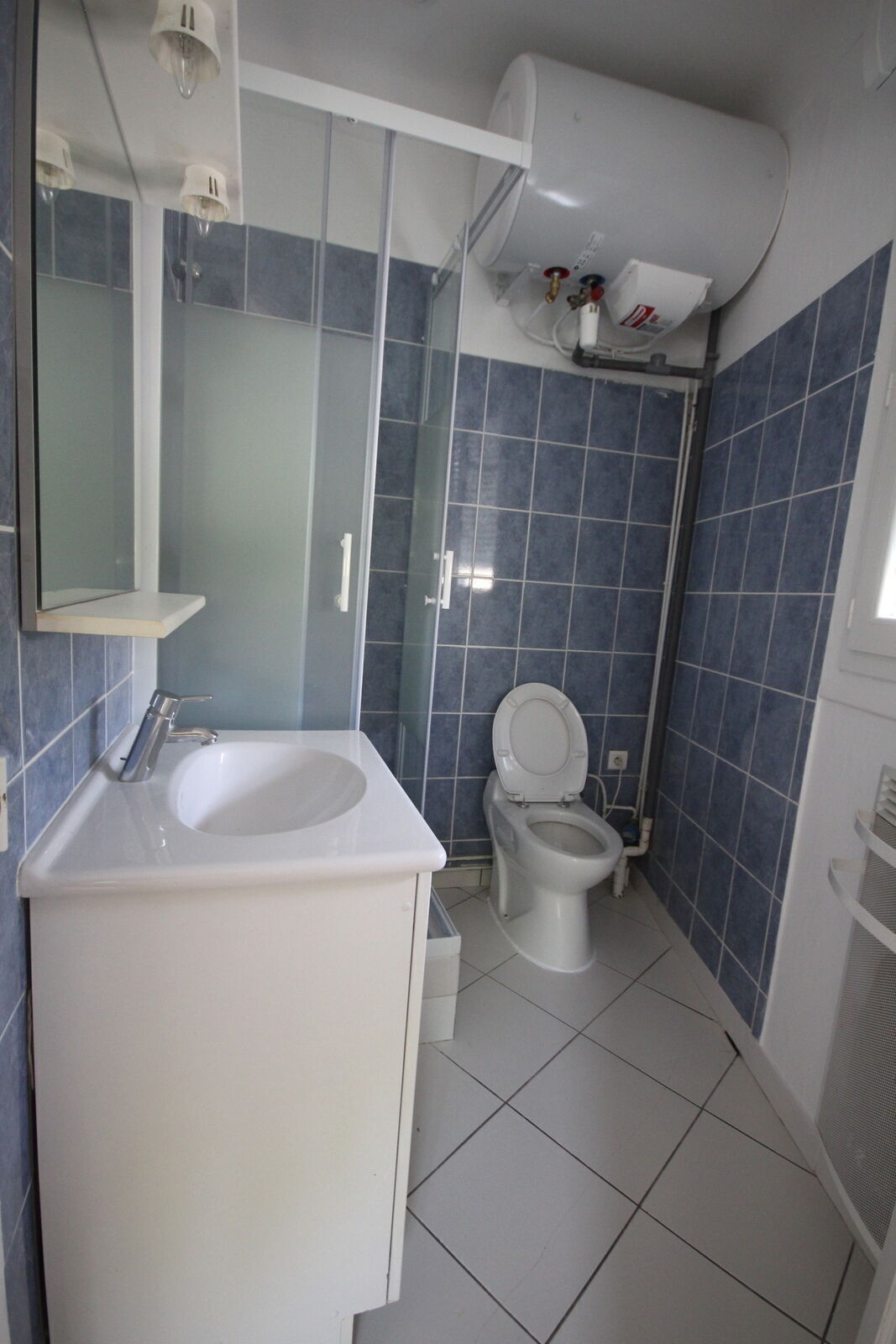 L'appartement T2 de 43 m² au-dessus du salon comprend deux pièces entièrement indépendantes au premier étage, avec une entrée, un placard, une cuisine aménagée, une pièce à vivre, une chambre et une salle de douche avec WC. Locataire en place.