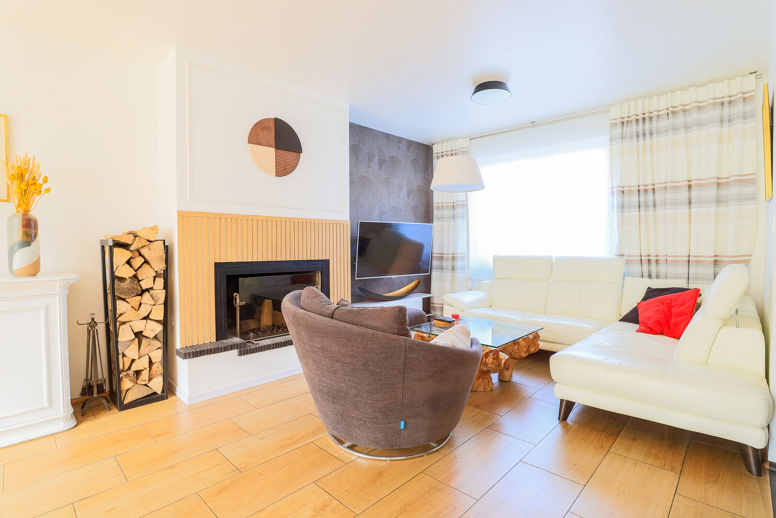 Les pièces sont spacieuses et lumineuses, créant une atmosphère chaleureuse et accueillante, accès vers le jardin.
