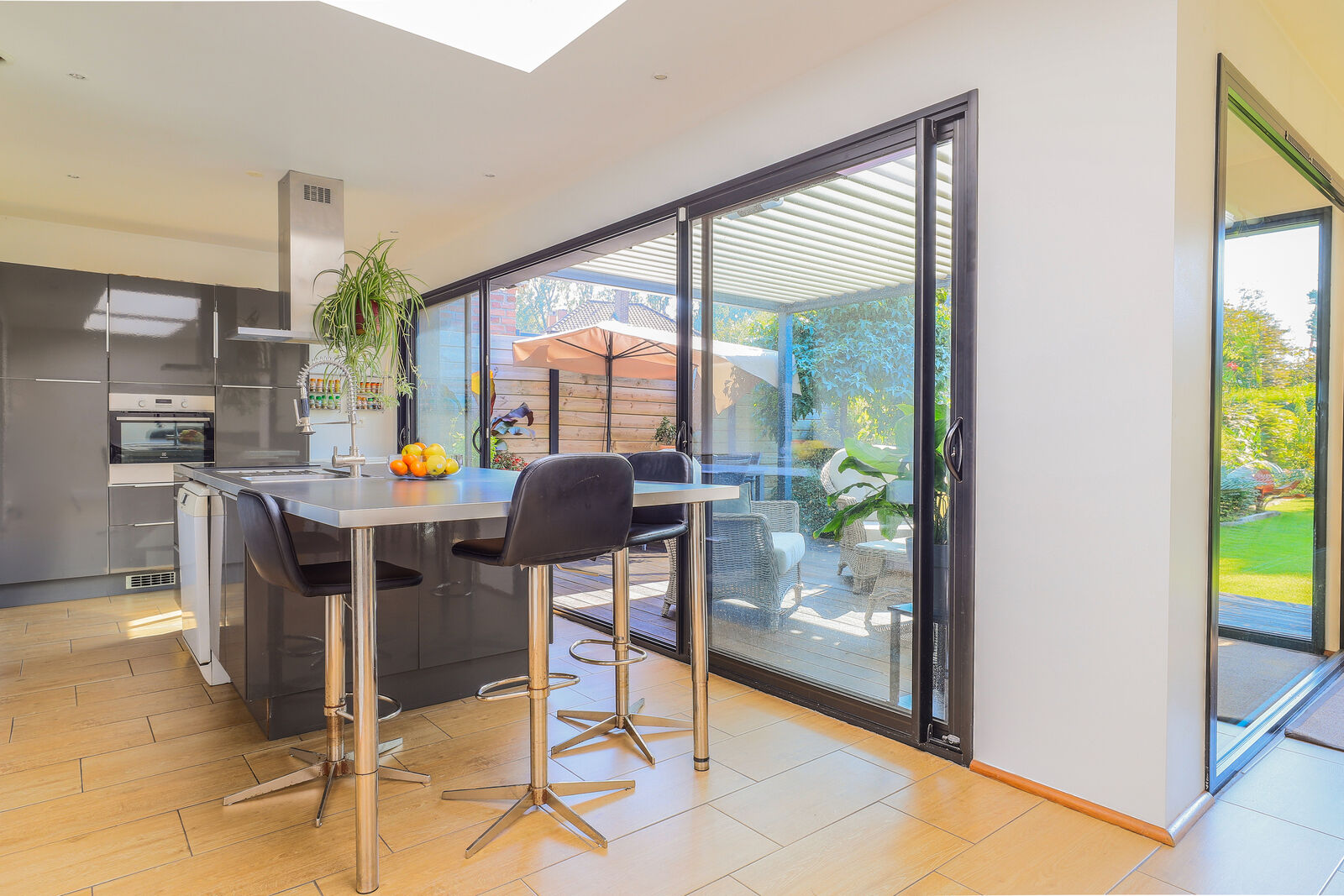 Vous pouvez profiter de préparation de repas en famille dans cette cuisine équipée, partageant des moments de convivialité sur la terrasse tout en ayant une superbe vue sur le jardin.