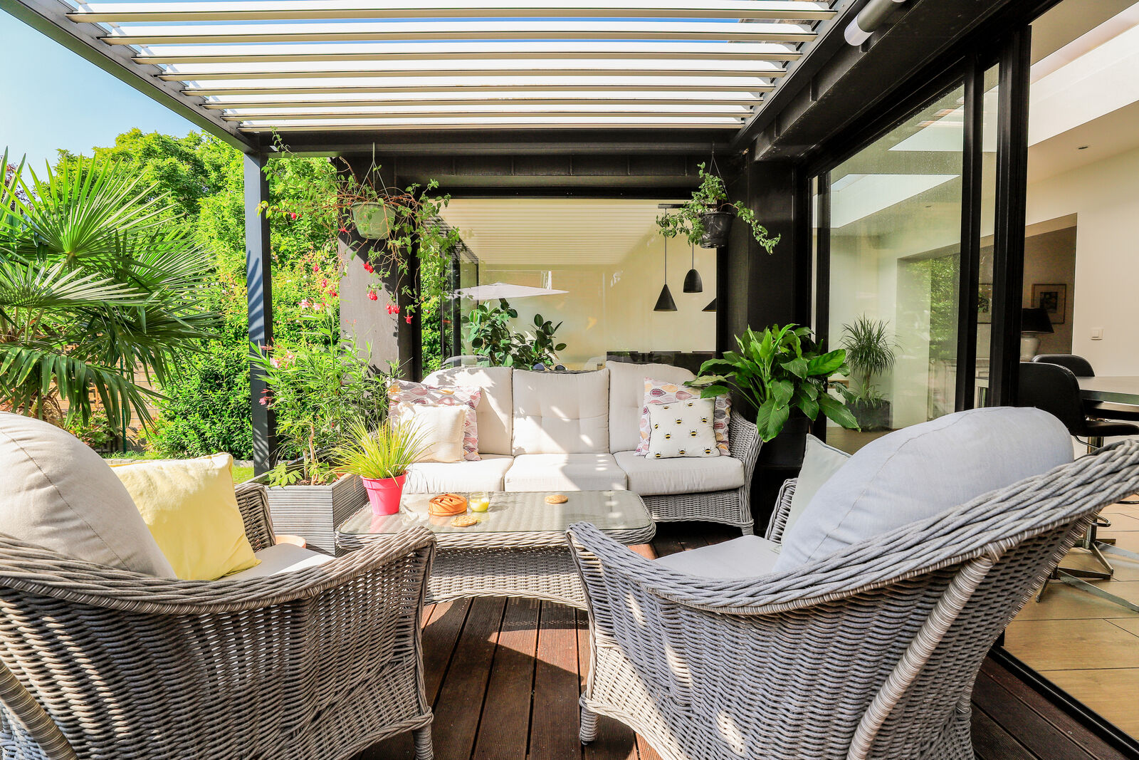 Le jardin est un véritable havre de paix doté au fond du jardin d’un potager et d'un cabanon.