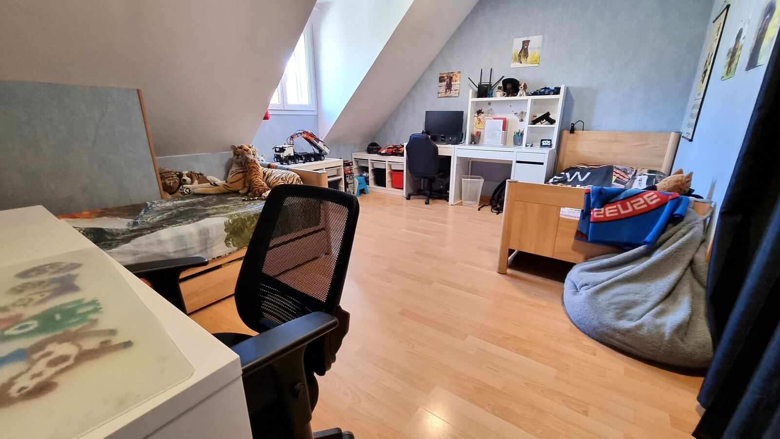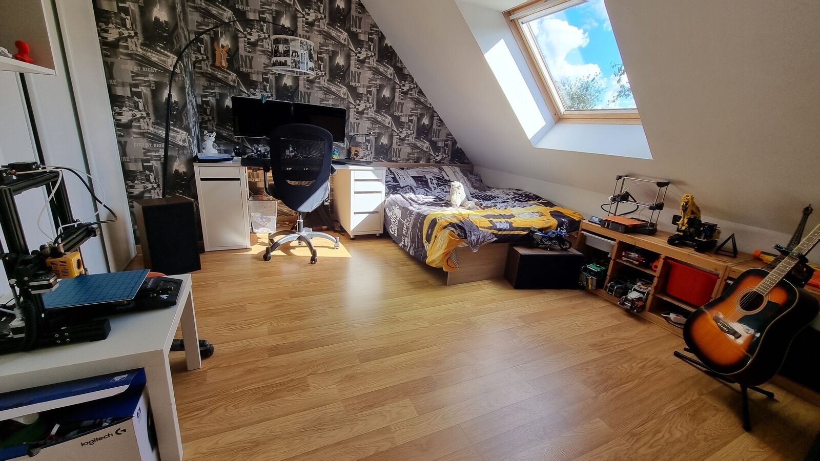 - 5 chambres à l'étage, de beaux volumes avec des rangements dans le couloir et les chambres, un w.c.