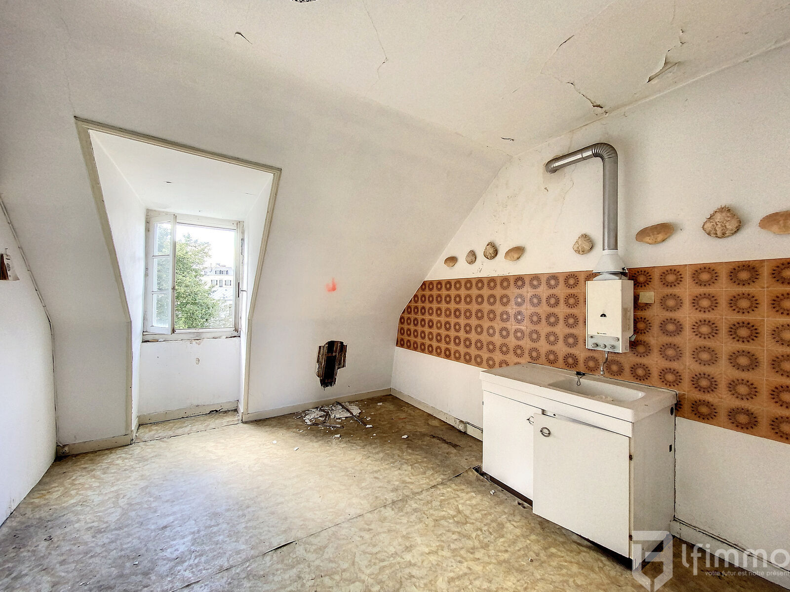 Situé au 2ème étage, cet appartement bénéficie d'une agréable luminosité et d'une belle hauteur sous plafond. Il nécessite une rénovation complète.