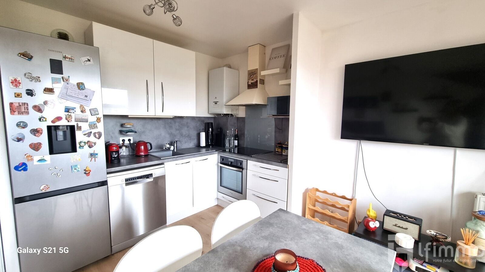 Surface optimisée avec une séjour spacieux et un coin cuisine entièrement équipée et aménagée .