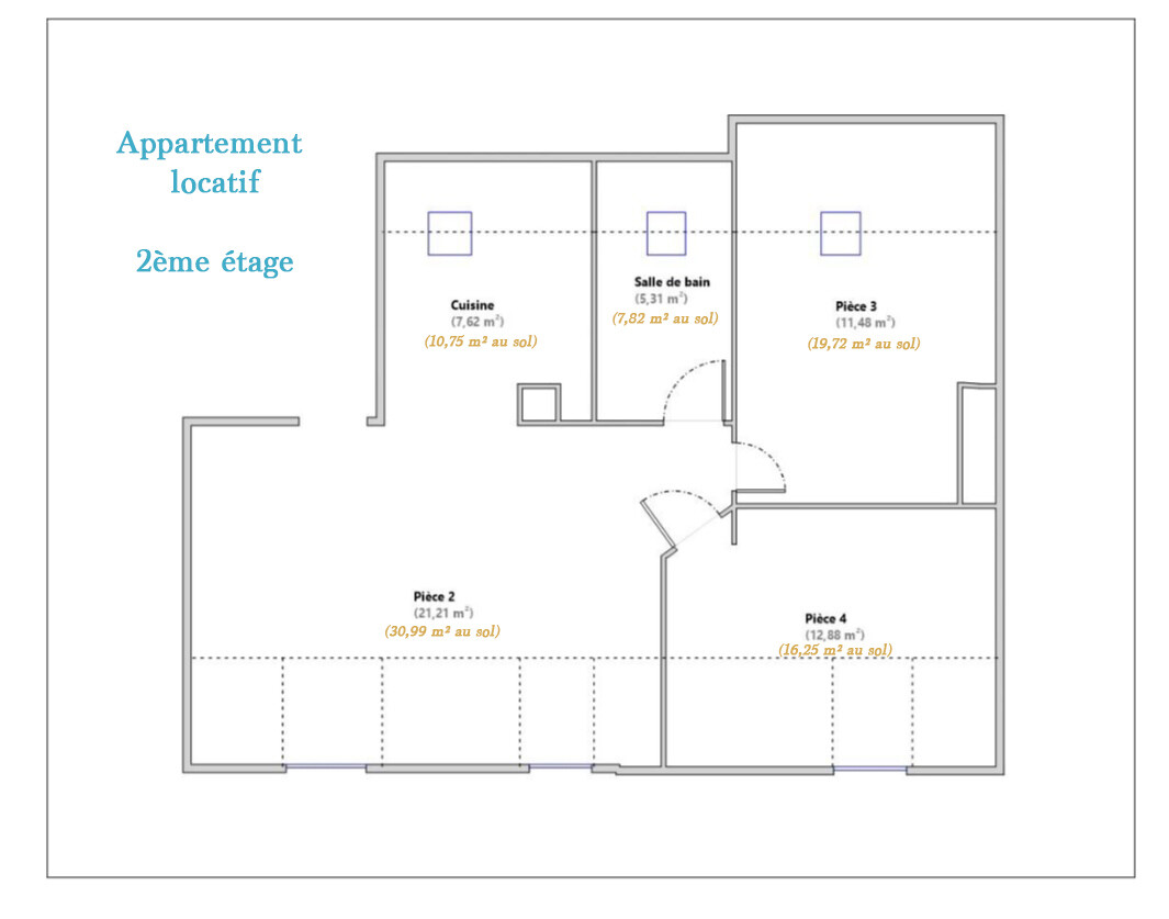 - L’appartement loué (1er étage + 2ème étage), d’une surface de 81,99 m² habitables (111,33 m² au sol), se décrit comme suit :