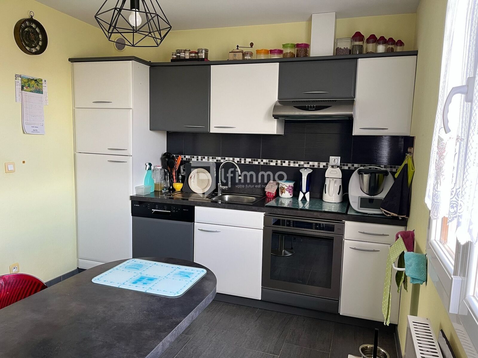 1 cuisine équipée fermée. Vous avez la possibilité d'ouvrir sur le salon/séjour, lumineux, pour profiter d'une belle surface de 35m2