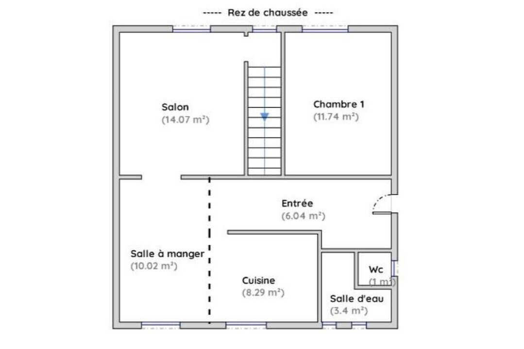 Elle est composée, en rez-de-chaussée surélevé, d'un séjour avec salon, salle à manger, une cuisine ouverte, une salle d'eau, des toilettes et une chambre.