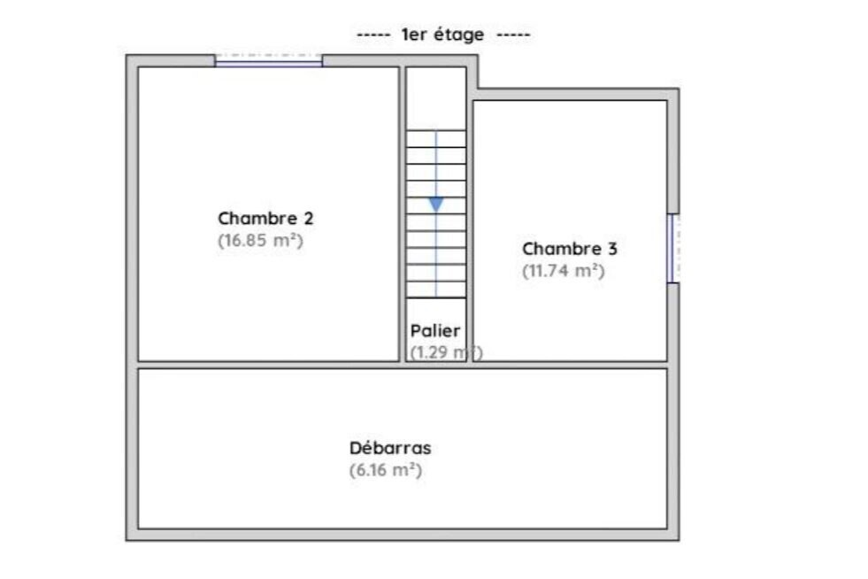A l'étage il y a 2 chambres et un débarras.