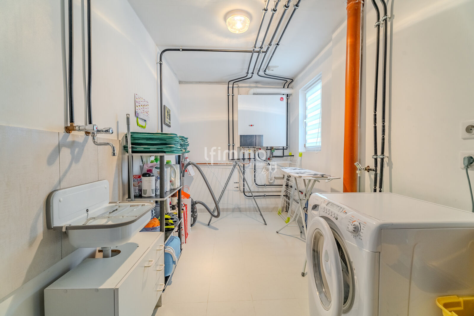 Au rez-de-chaussée, l'entrée vous mène vers un grand salon/séjour lumineux, ouvert sur une cuisine entièrement équipée. Ce niveau dispose également d'une chambre (ou bureau, selon vos besoins), ainsi que d'un local technique abritant le ballon d’eau chaude, ainsi que les équipements de buanderie. Un toilette séparé complète le rez-de-chaussée.