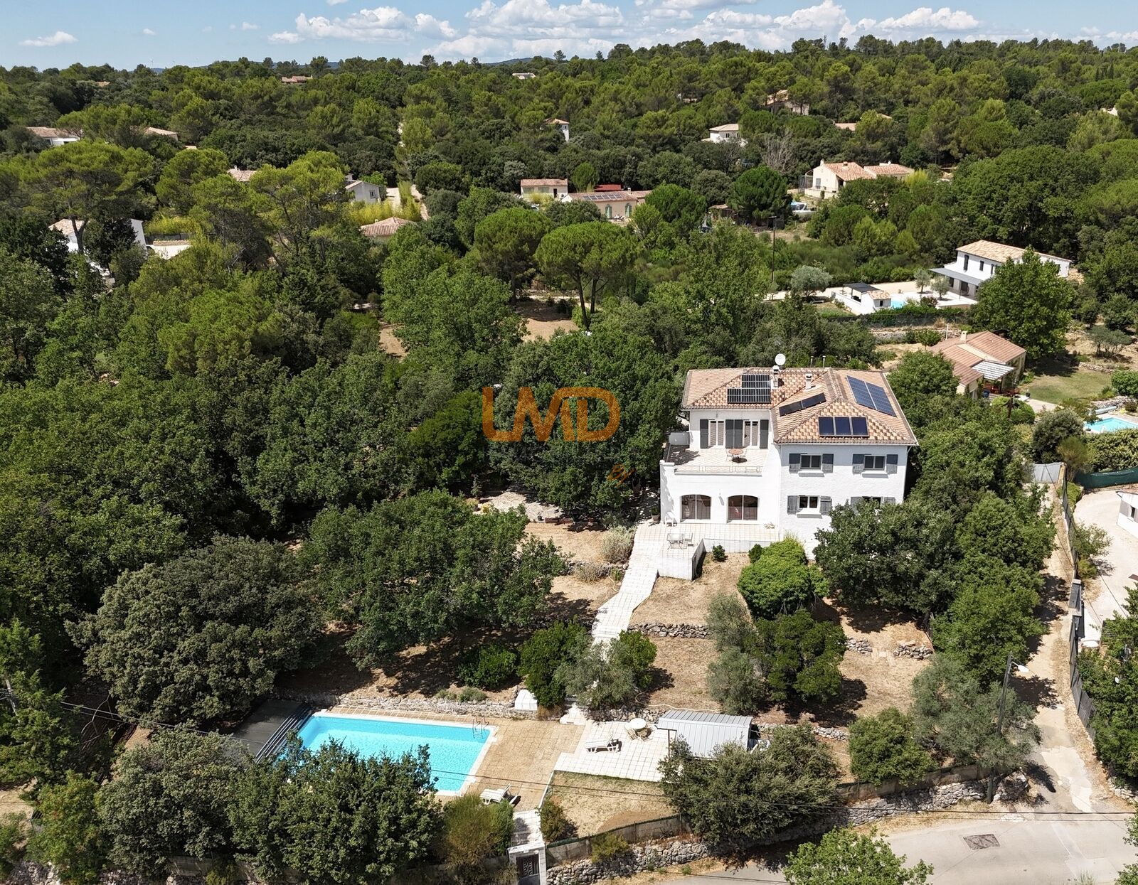 Nichée dans un quartier résidentiel prisé, au calme absolu, avec une vue totalement dégagée sans aucun vis-à-vis, cette propriété d’exception développe une surface habitable de 286m², édifiée sur un magnifique terrain arboré de 5 000 m².