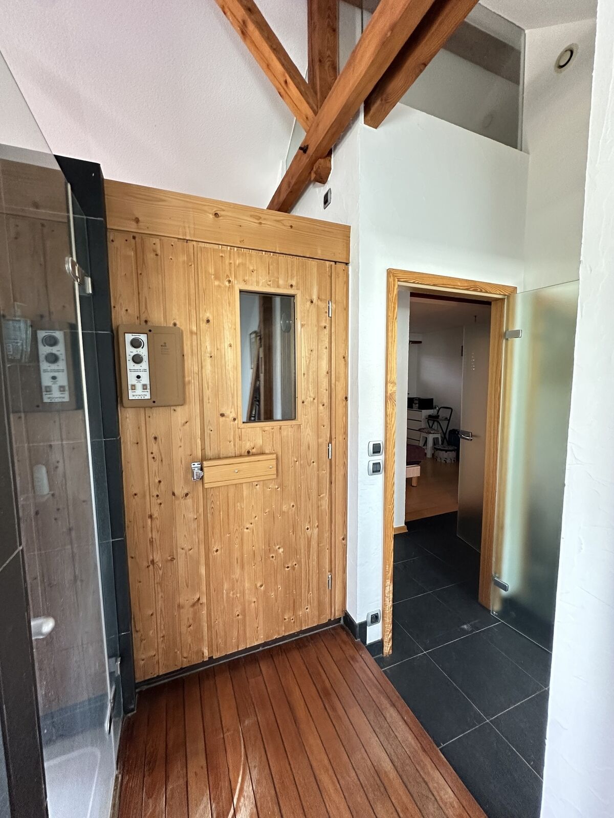 A l'étage, vous aurez l'agréable surprise de découvrir un espace tout ouvert dans un esprit "Loft" de près de 70 m² constitué d'une grande chambre, d'un coin bureau , d'une salle de bain avec wc et un sauna
