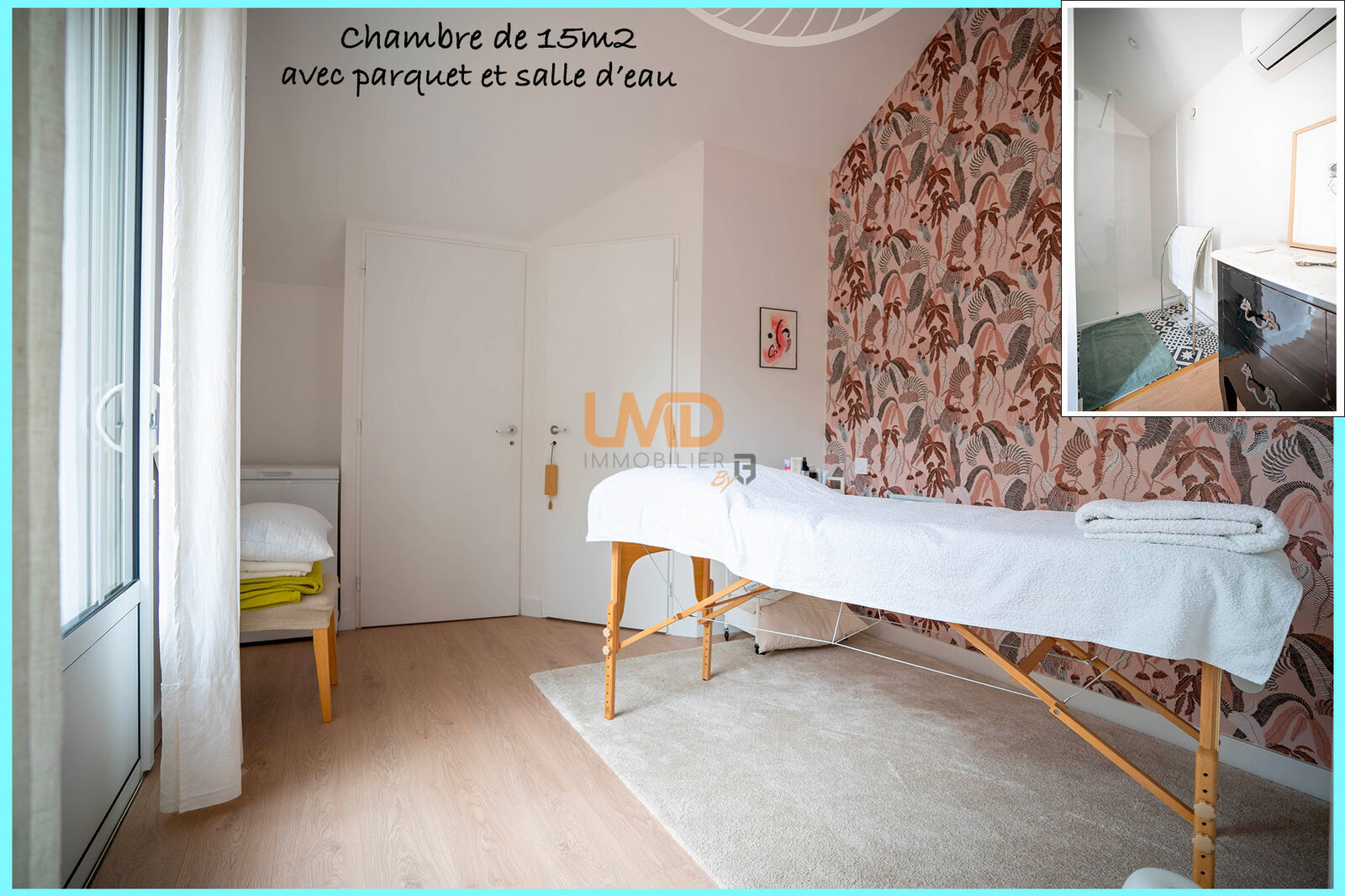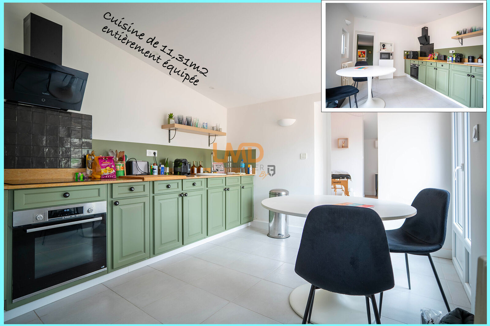 Cette maison saura vous séduire par son séjour de 48m2 doublement exposé avec mur en briquette apparente ainsi que par sa cuisine de 11,31m2 entièrement équipée. Au rez-de-chaussée, une chambre de 15m2 a été aménagé avec une salle d'eau et climatisation réversible. On retrouve également une entrée avec rangement, un cellier avec arrivée et évacuation d'eau et un WC.
