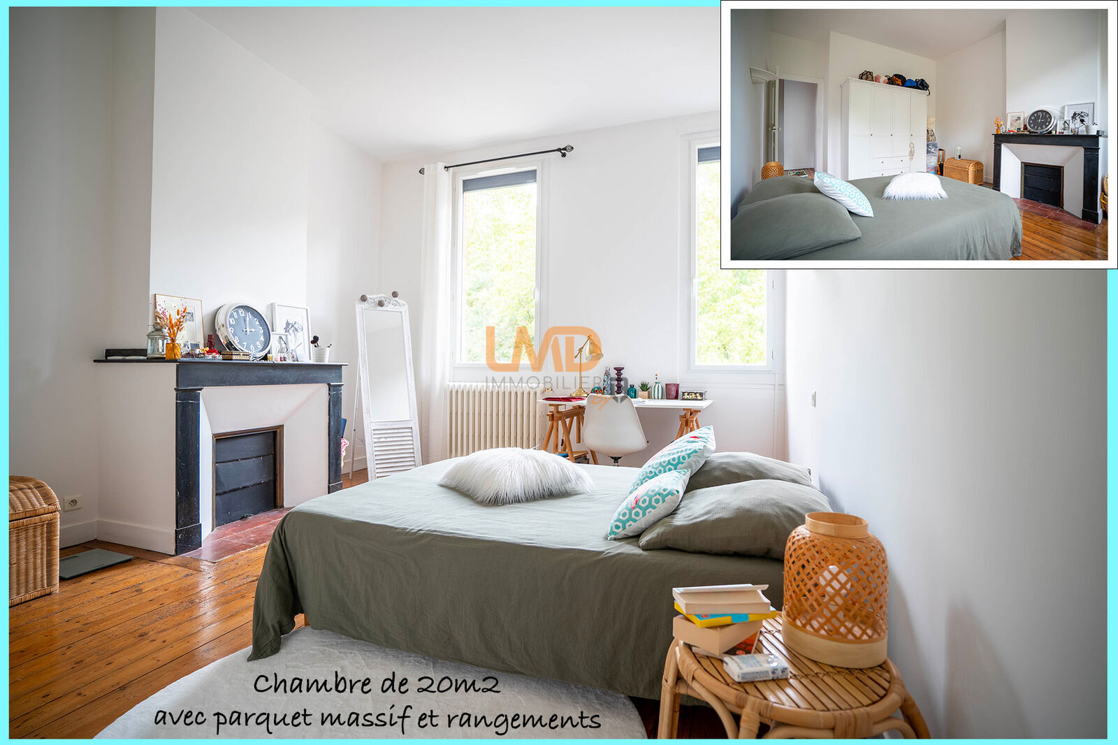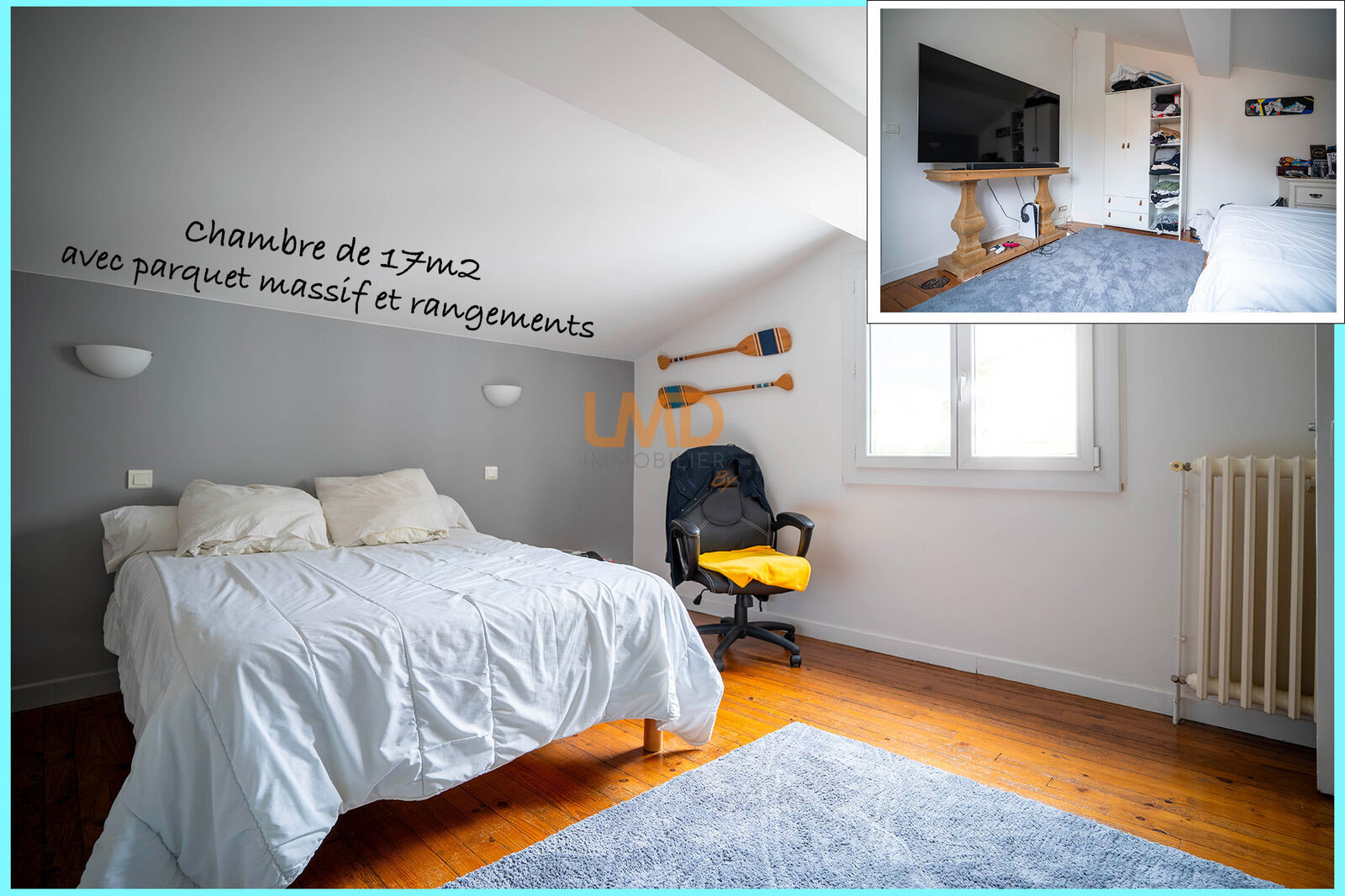 A l'étage, les trois chambres mesurent entre 17m2 et 20m2 et bénéficient d'un parquet massif et de rangement.