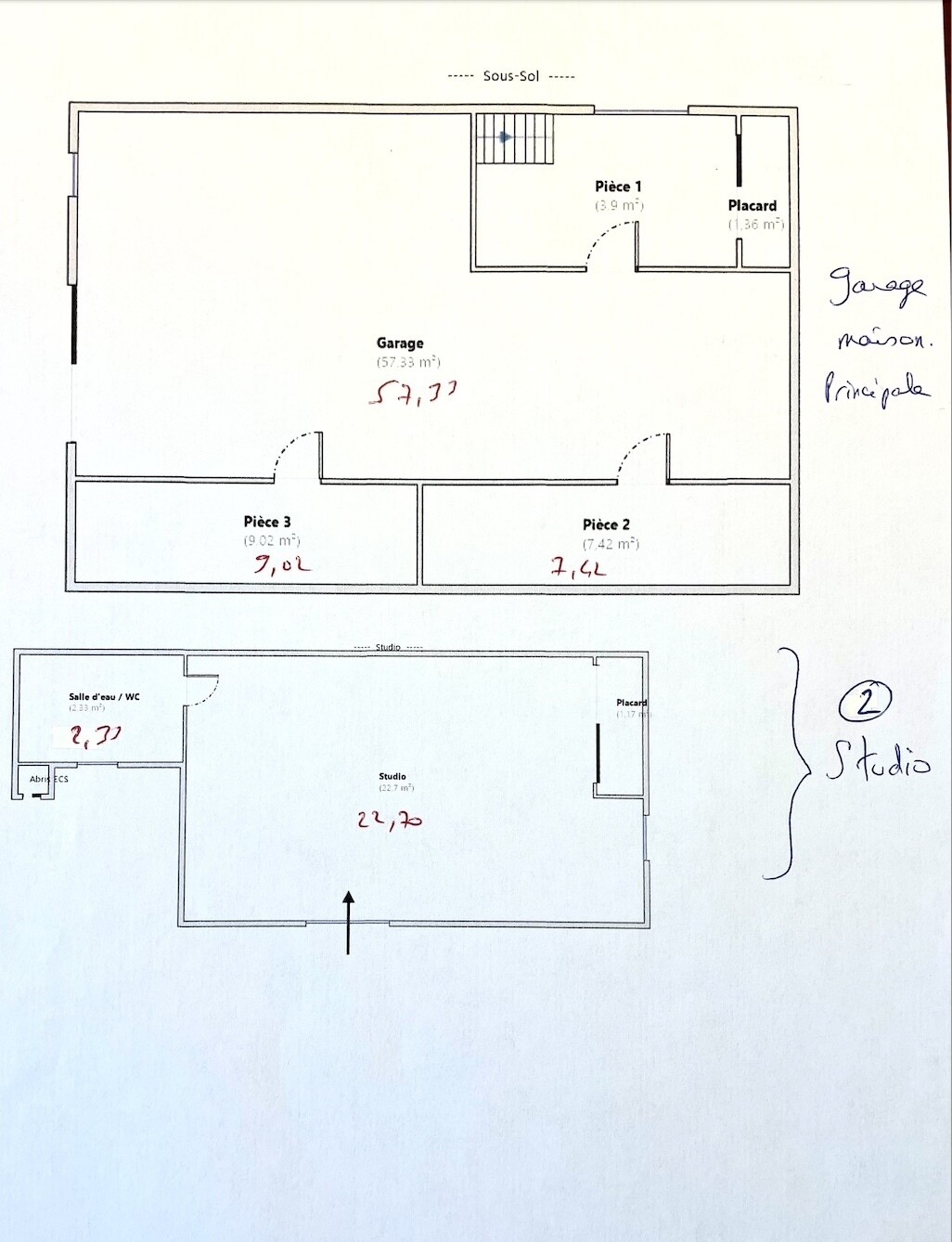 Total plancher avec sous sol: 453m2.