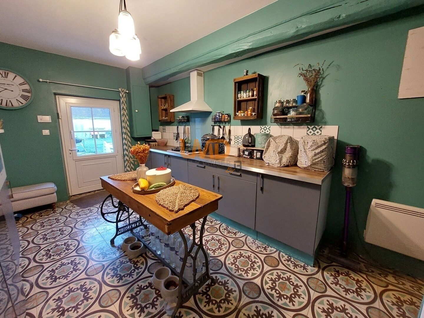 Rez-de-chaussée: Salon-séjour d'environ 40 m² avec un poêle à bois, cuisine aménagée et équipée, une salle d'eau, un WC, une laverie.