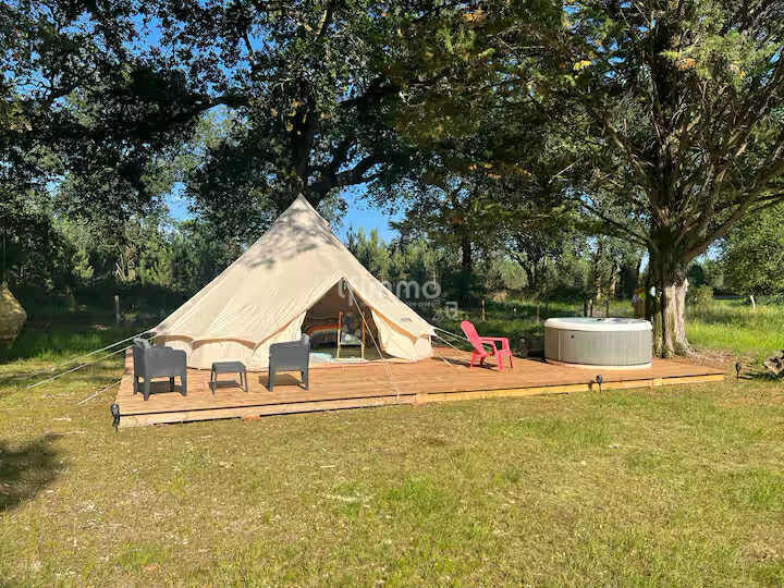 La piscine, véritable havre de fraîcheur, trouve naturellement sa place au milieu d’un terrain de plus de 9 500 m², bordé d’arbres centenaires qui veillent sur la propriété.