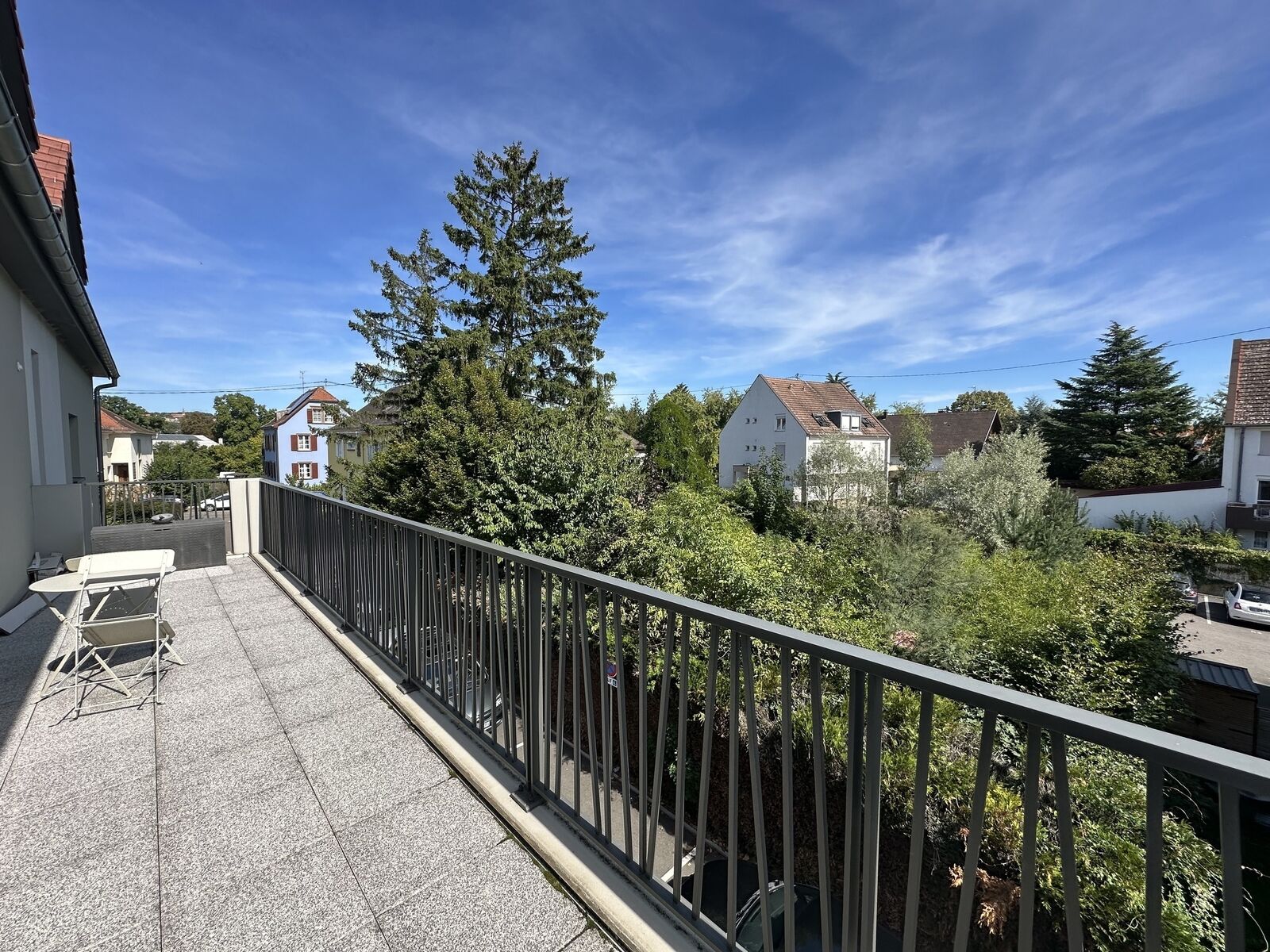La terrasse de 19 m² donne sur des arbres avec très peu de vis-à-vis.