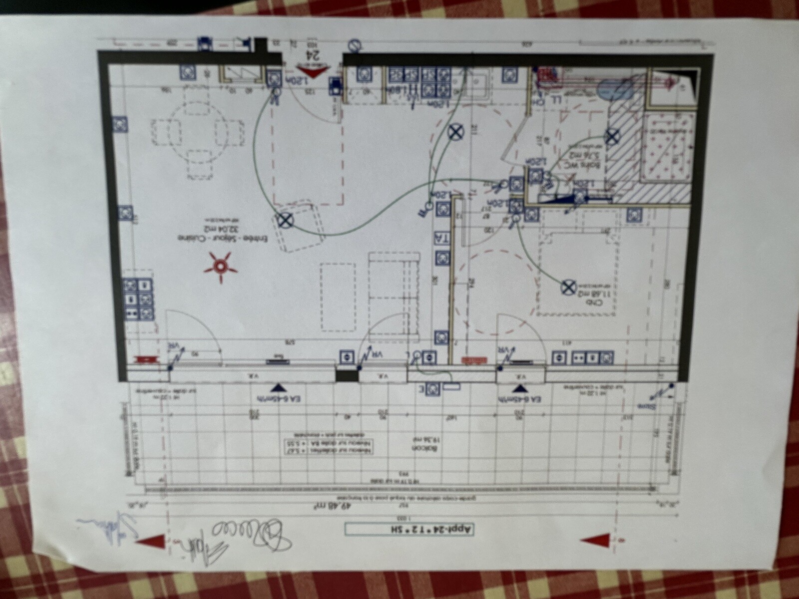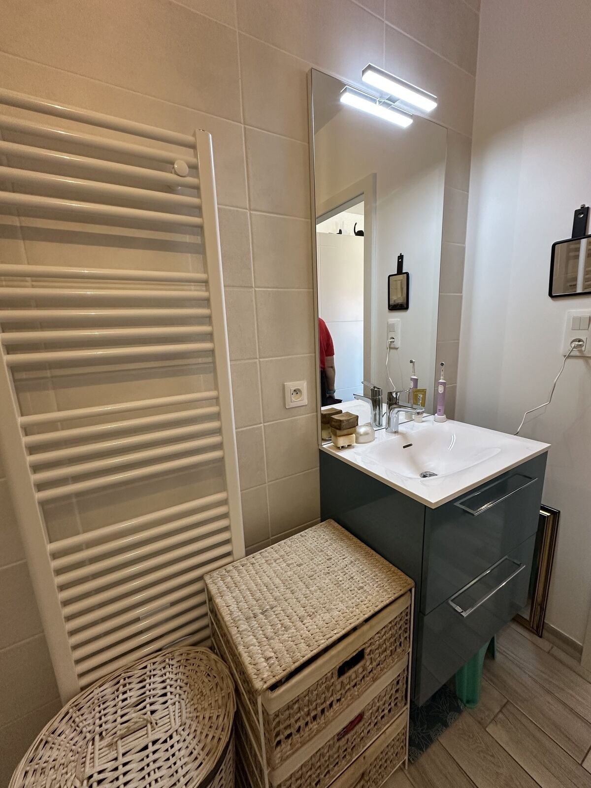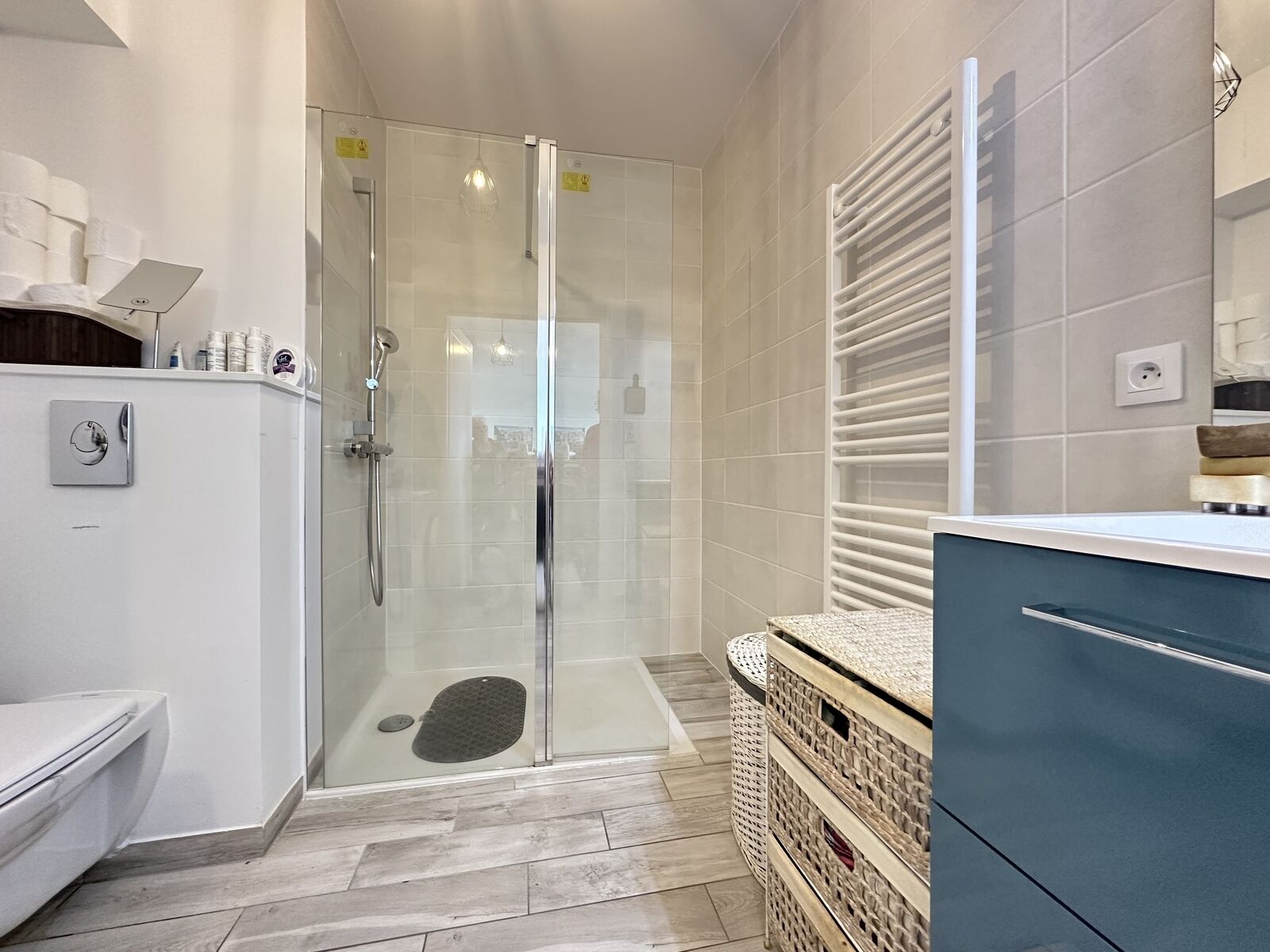 1 salle d'eau aménagée comprenant un wc suspendu, 1 douche avec bac extra plat, 1 plan vasque avec miroir, branchement machine à laver.