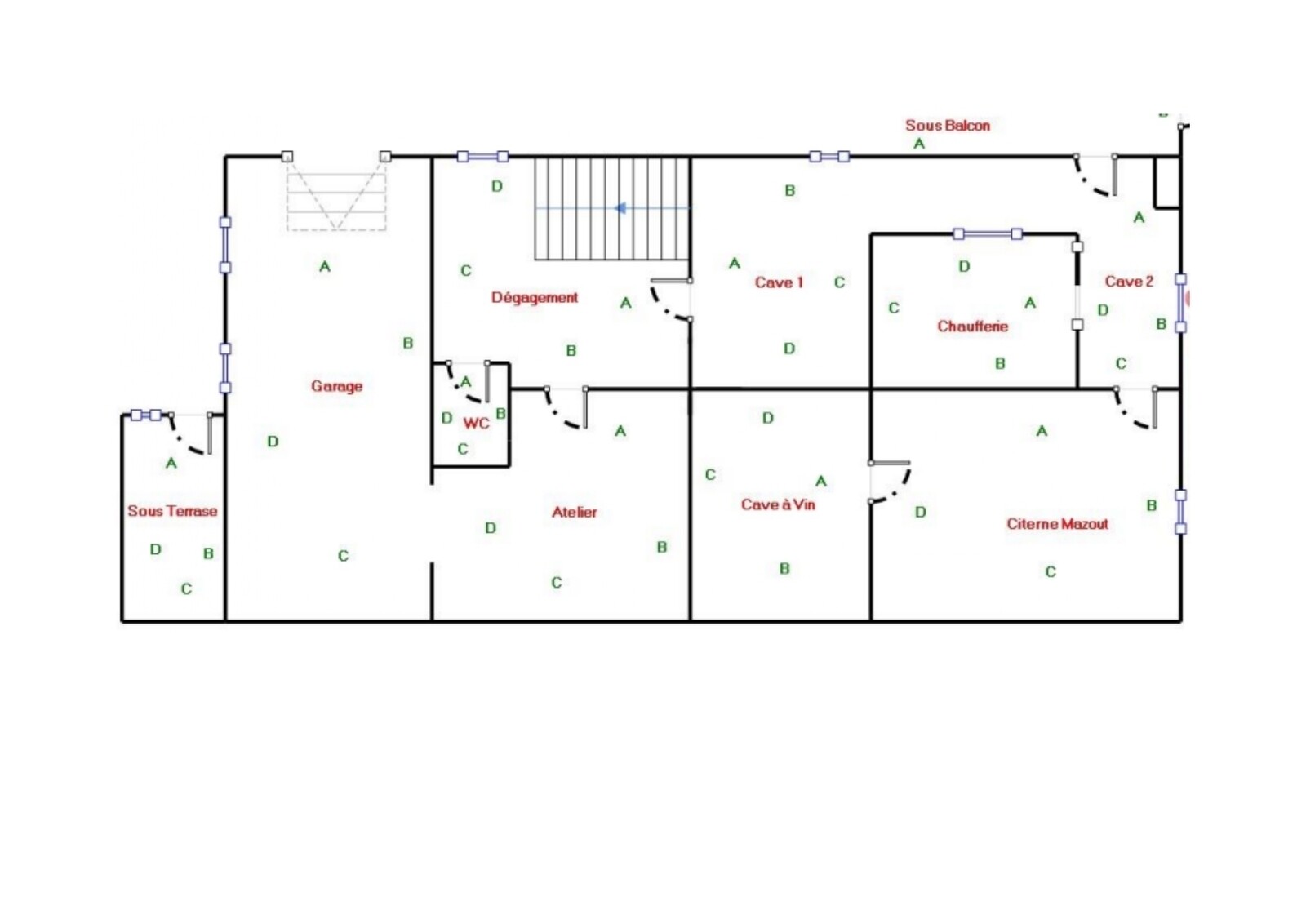 Sous-sol : une vaste cave avec garage équipé d’une porte motorisée.