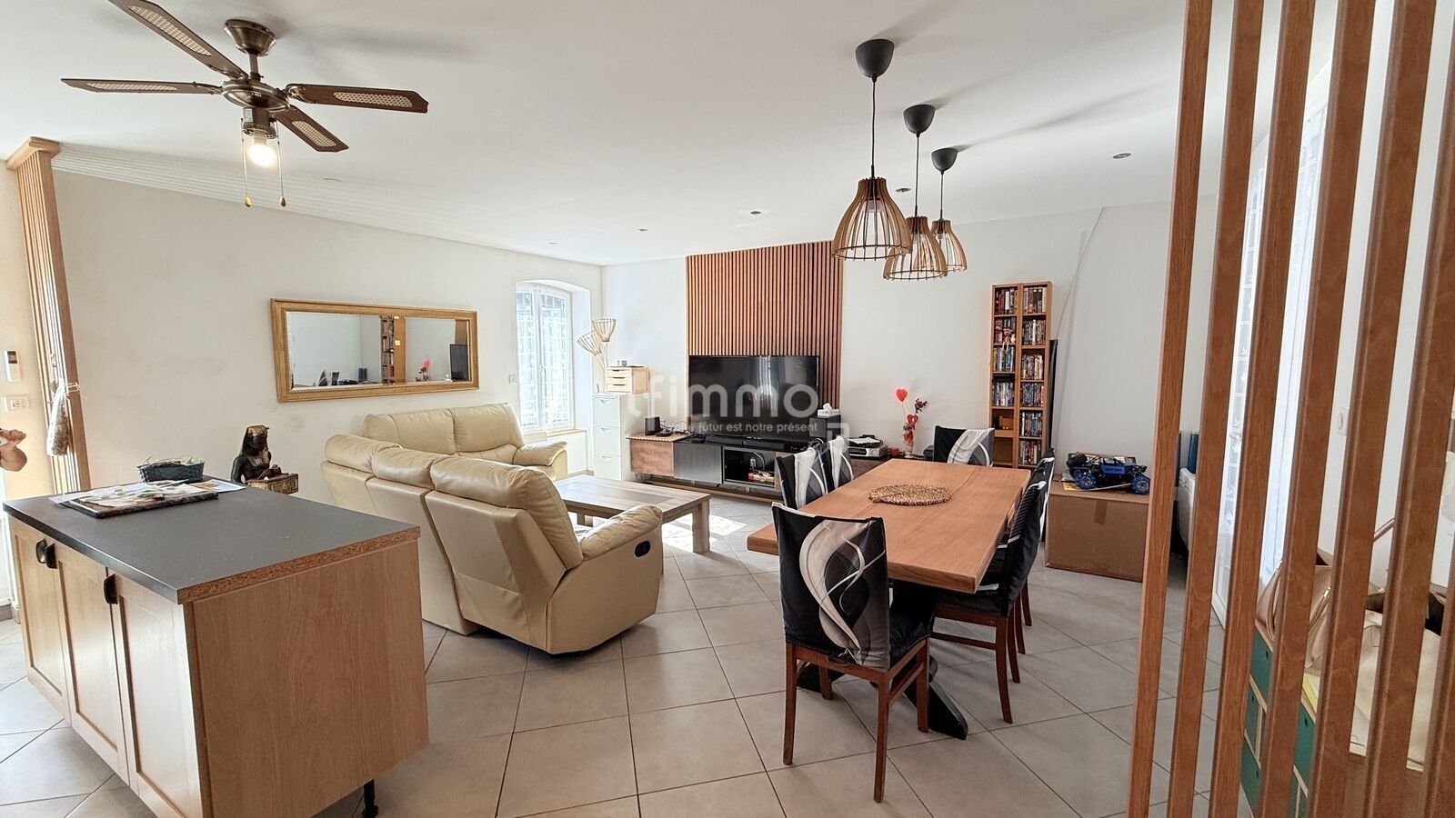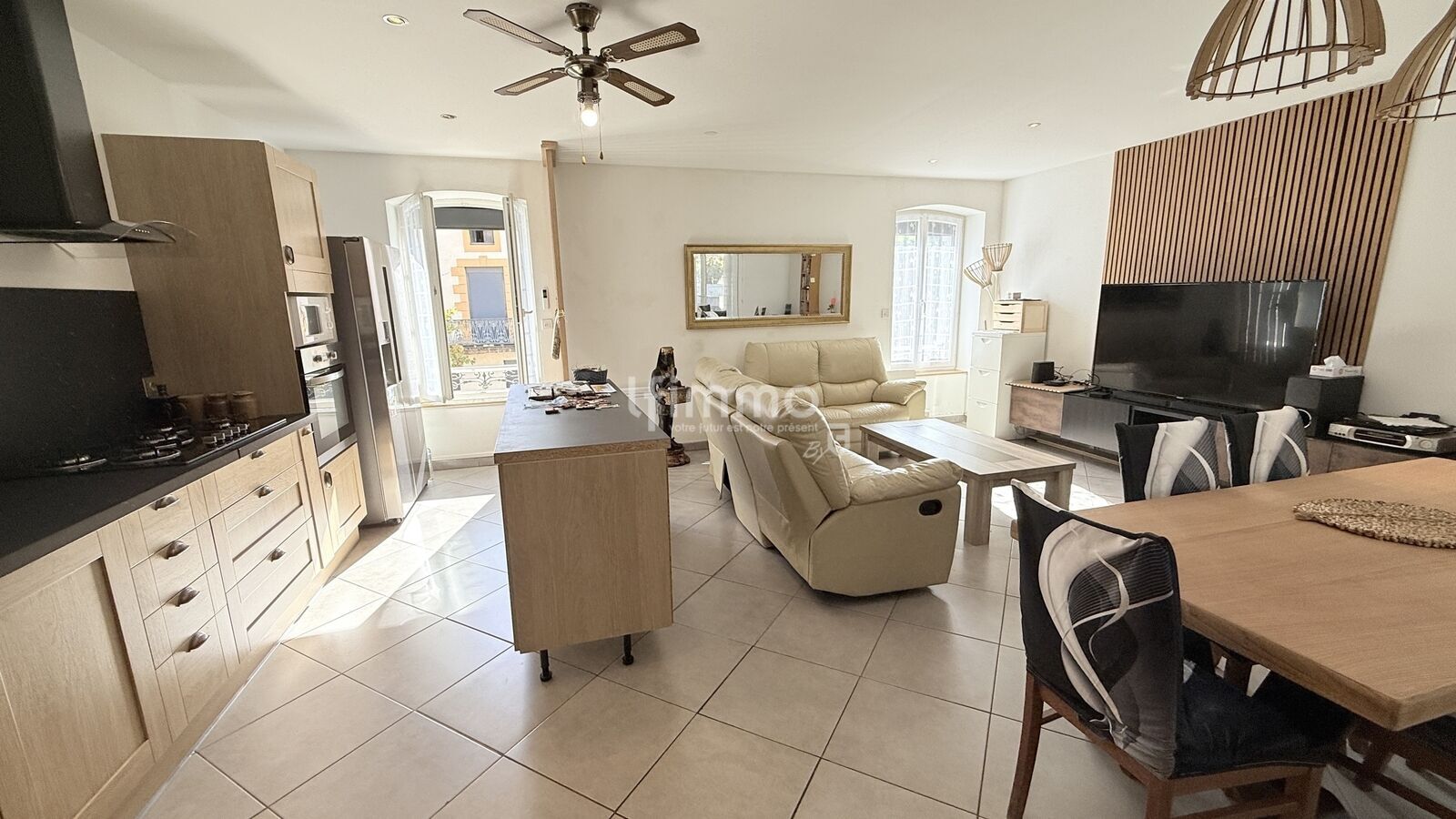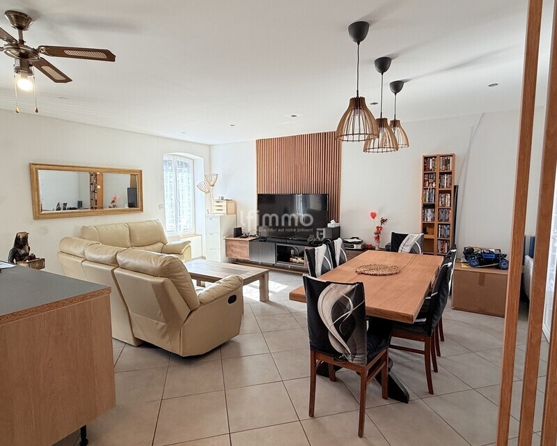 Centre village, agréable maison de ville rénovée avec gout offrant une partie maison de 109 m² séjour cuisine américaine ouverte de 37 m² , wc,