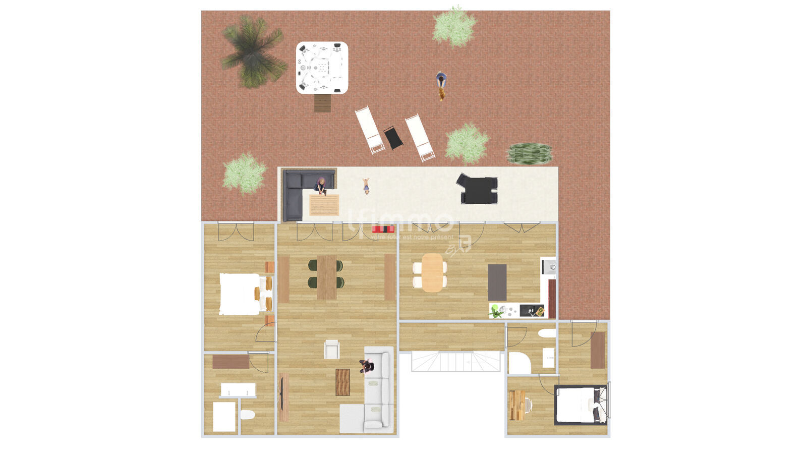 Le rez-de-chaussée offre un double séjour lumineux d’environ 45 m² donnant sur la terrasse et le jardin, une grande cuisine dinatoire de 26 m² ouverte sur l’extérieur, ainsi qu’une suite parentale de 15 m² , donnant sur le jardin, avec dressing et salle d’eau privative de 9,5 m². Une buanderie/cellier complète ce niveau, bénéficiant de beaux volumes et d’une belle hauteur sous plafond.