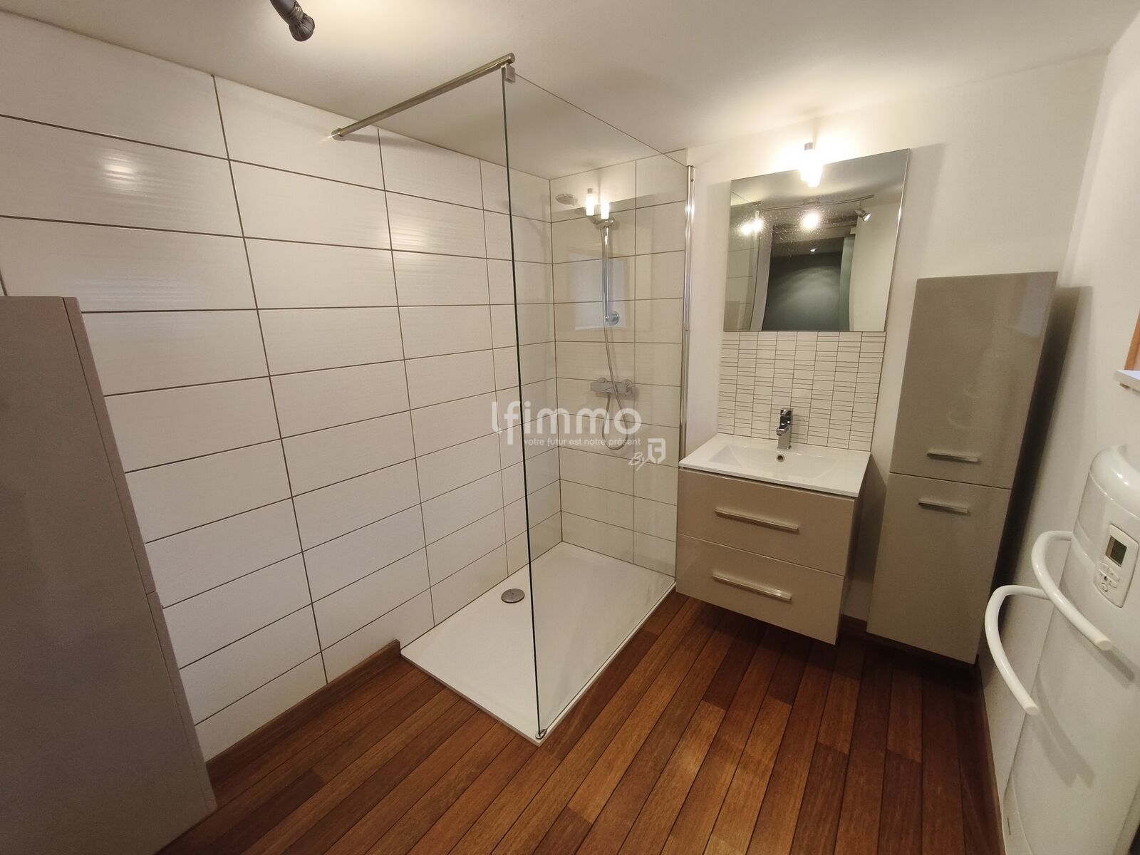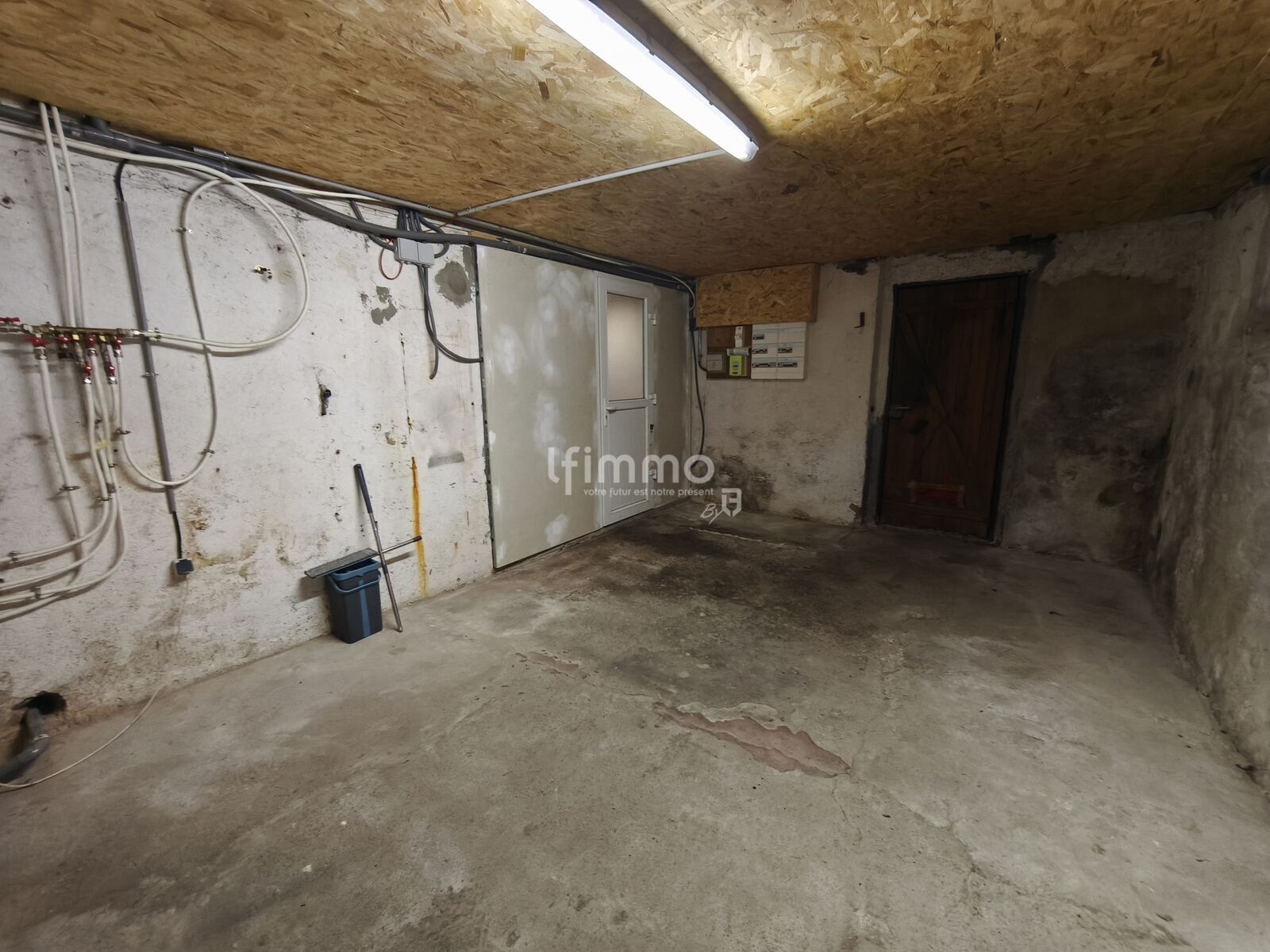 Au sous-sol, une première partie est aménagée en salle d’eau, bien équipée avec rangements et chauffée par un sèche-serviette électrique. La seconde partie peut servir d’atelier ou d’espace de stockage.