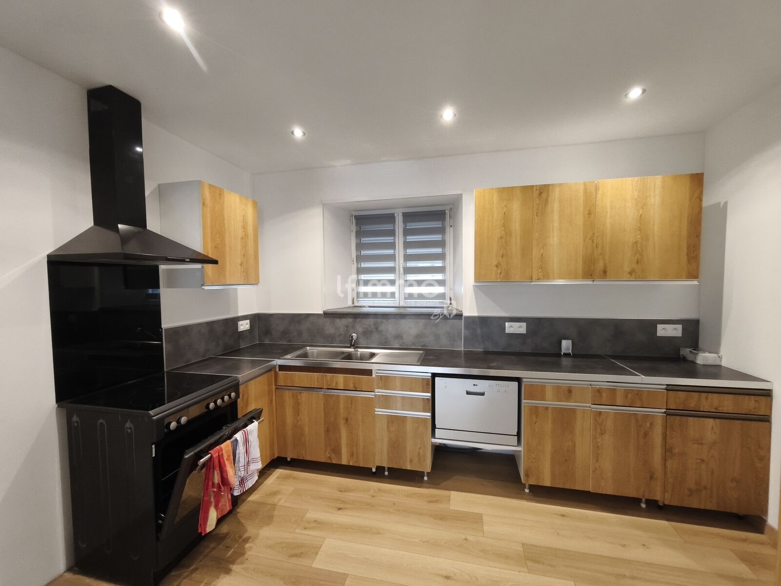 Au rez-de-chaussée, l’accès à la maison se fait par un sas d’entrée 5 m², suivi d’un couloir desservant l’escalier et un WC séparé équipé d'une fenêtre. Vous trouverez ensuite une cuisine aménagée ouverte sur un salon/séjour convivial, baigné de lumière grâce à trois grandes fenêtres.