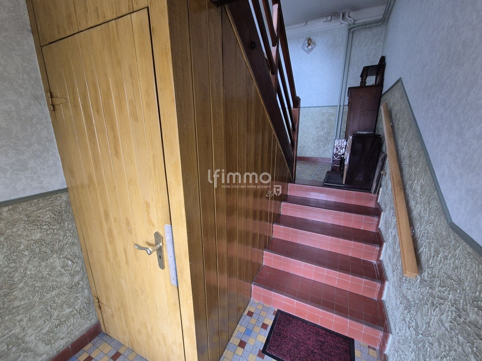 une cage d'escalier dessert le sous-sol, les deux appartements et les combles.