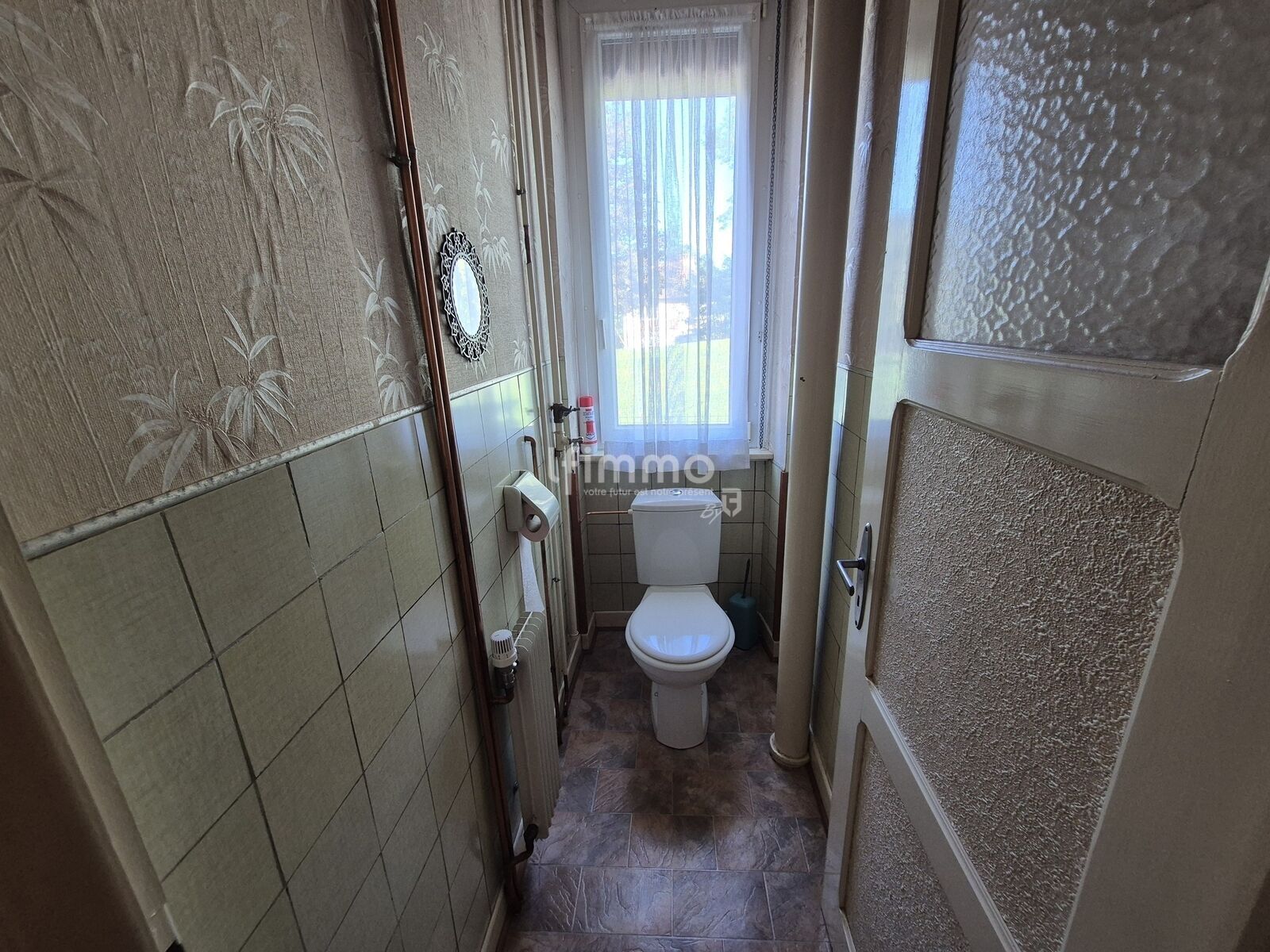 La maison est équipée d'une chaudière au fuel de 1986 et de fenêtres double vitrage en pvc.