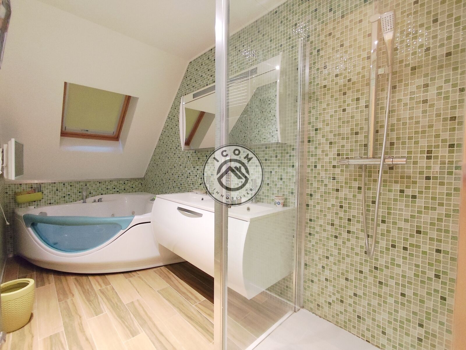 Un grenier, une buanderie, un garage avec porte motorisée et une allée privative accessible via un portail complètent ce bien