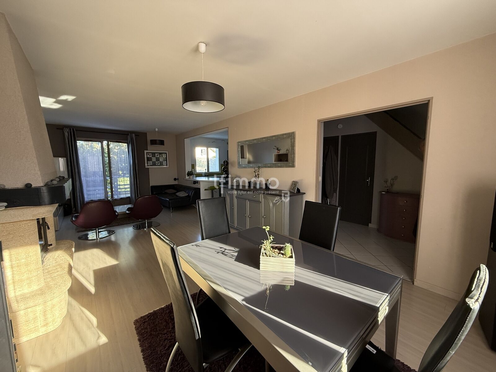 Au rez-de-chaussée, une entrée spacieuse dessert un vaste séjour salon lumineux avec cheminée, ouvrant sur une agréable terrasse idéale pour vos moments en famille.