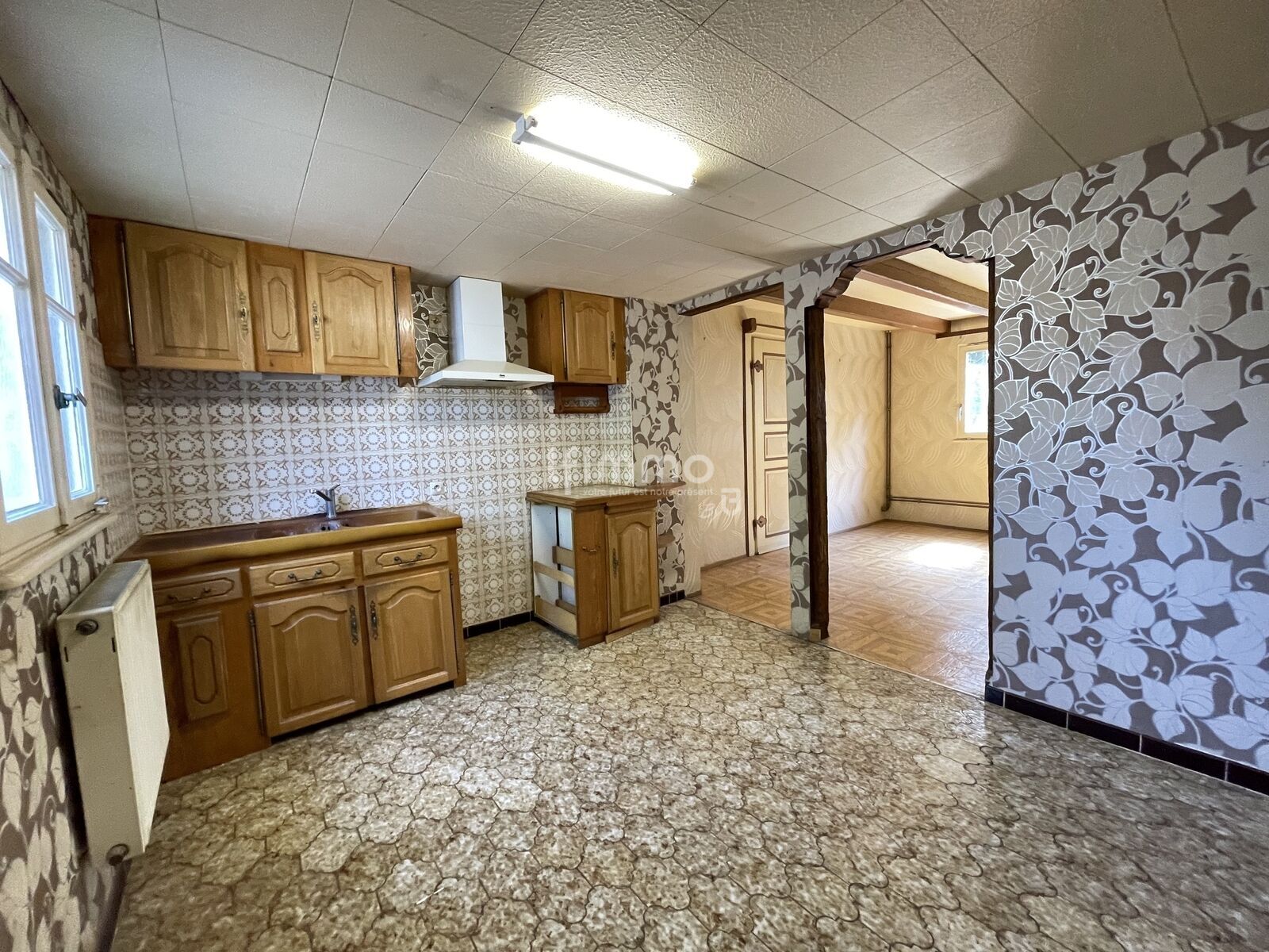 La maison nécessite des travaux de rénovation intérieure (cuisine, salle d’eau, électricité, finitions décoratives) mais dispose d’un gros œuvre sain : toiture et façade rénovées récemment.