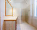 Cette pièce à vivre se prolonge par une cuisine aménagée et on trouve également sur ce niveau une grande salle d’eau et des WC.