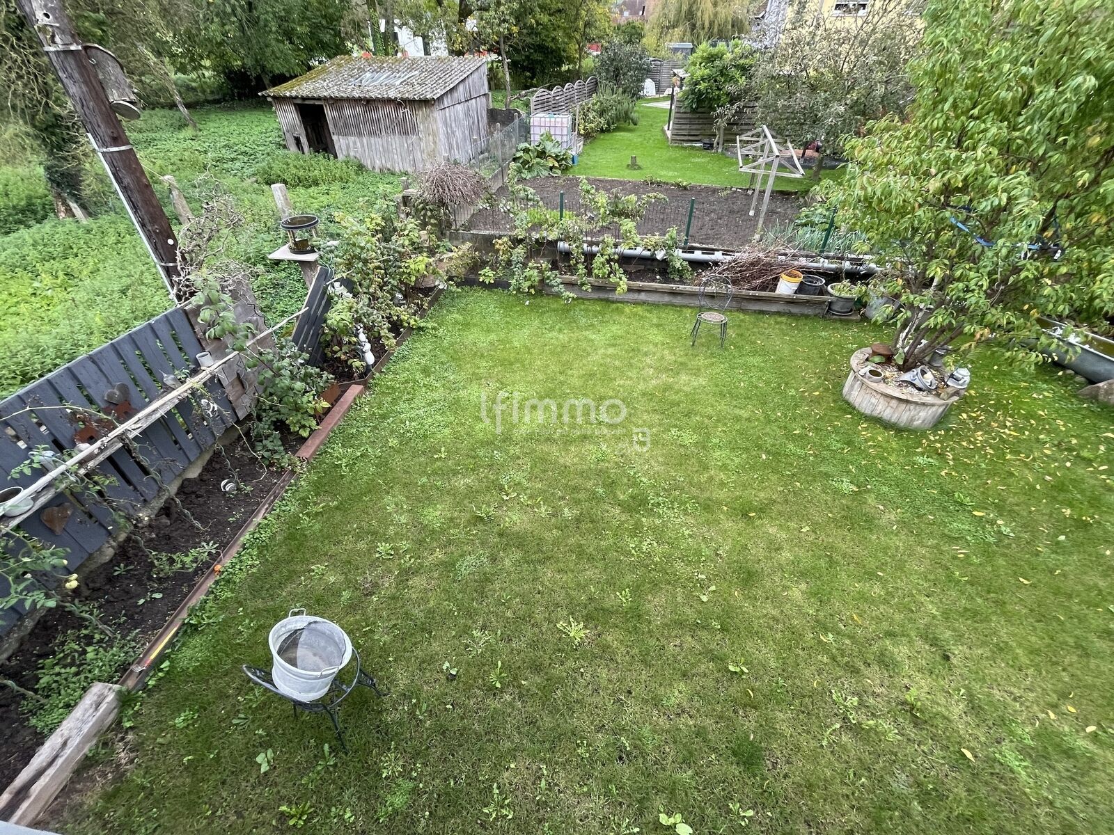 Extérieur ; jardin clôturé et arboré.