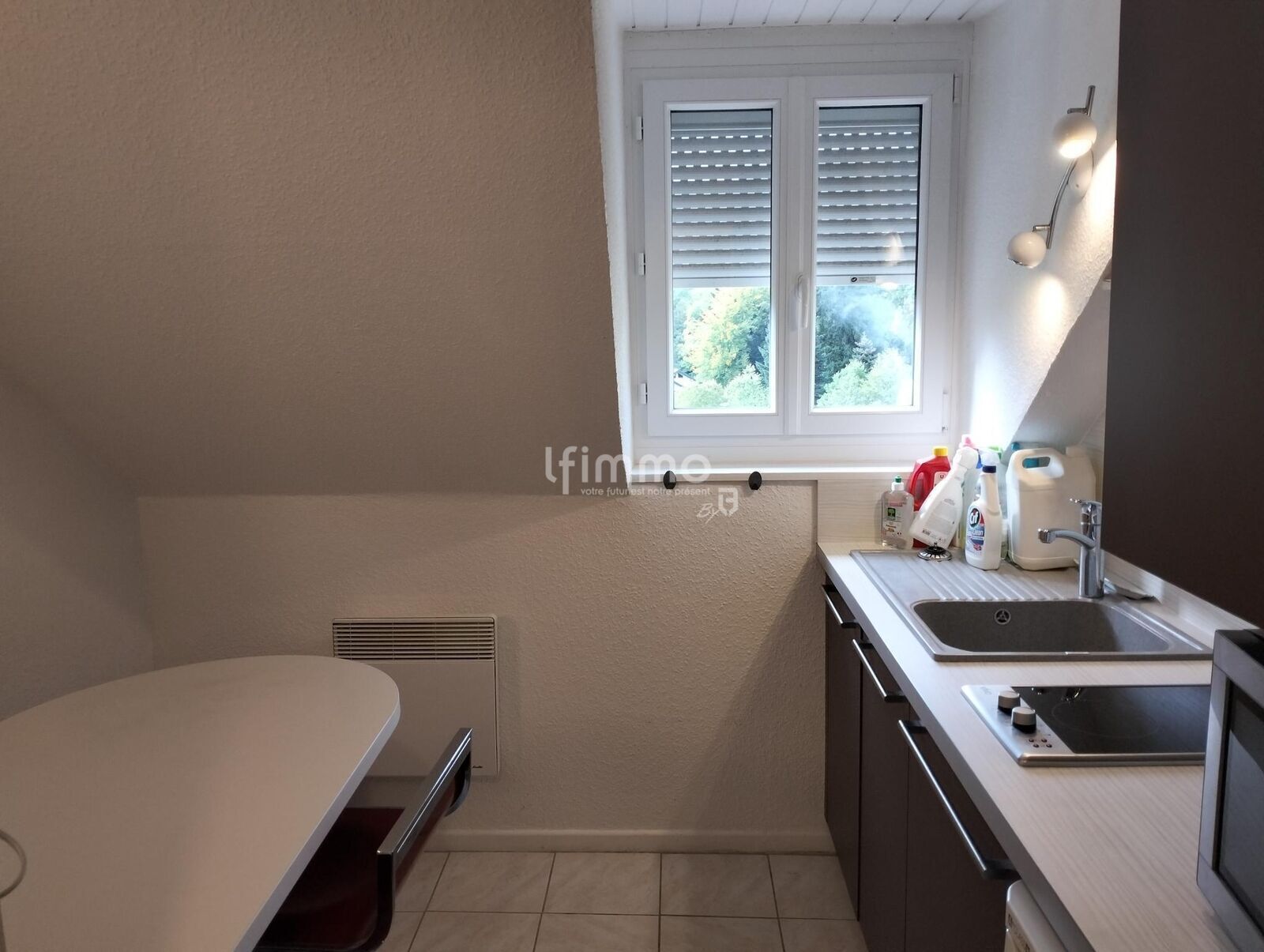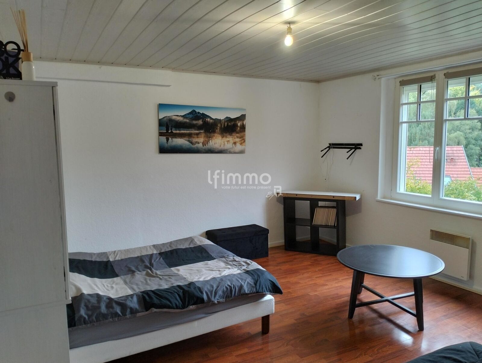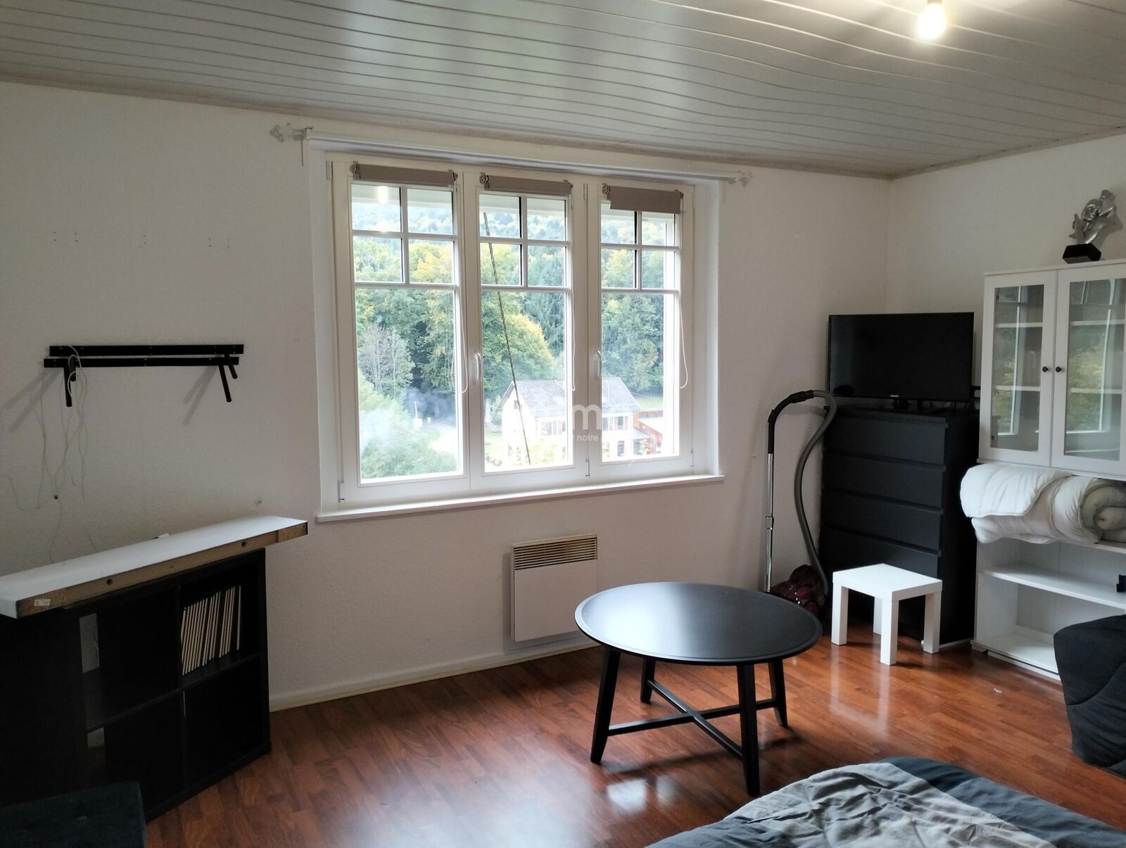 Le logement qui est partiellement meublé à une belle vue dégagé et est situé à quelques mètres de l’école communale.
